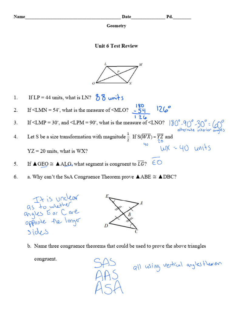 - Geometry Unit 6 Review 2024 Answers | PDF